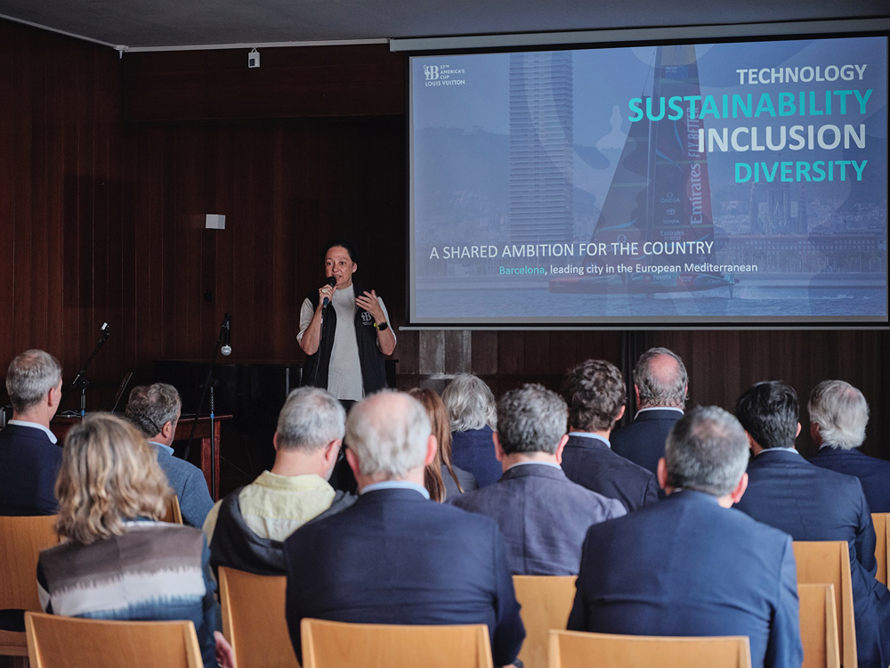 El Real Club Marítimo de Barcelona ha sido escenario esta mañana del acto “Todo lo que quieres saber sobre la Louis Vuitton 37th America’s Cup”, un coloquio a cargo de Aurora Catá, vicepresidenta de America’s Cup Event, en el que ha explicado a los socios los detalles de la competición náutica que dará comienzo en Barcelona este próximo mes de agosto.