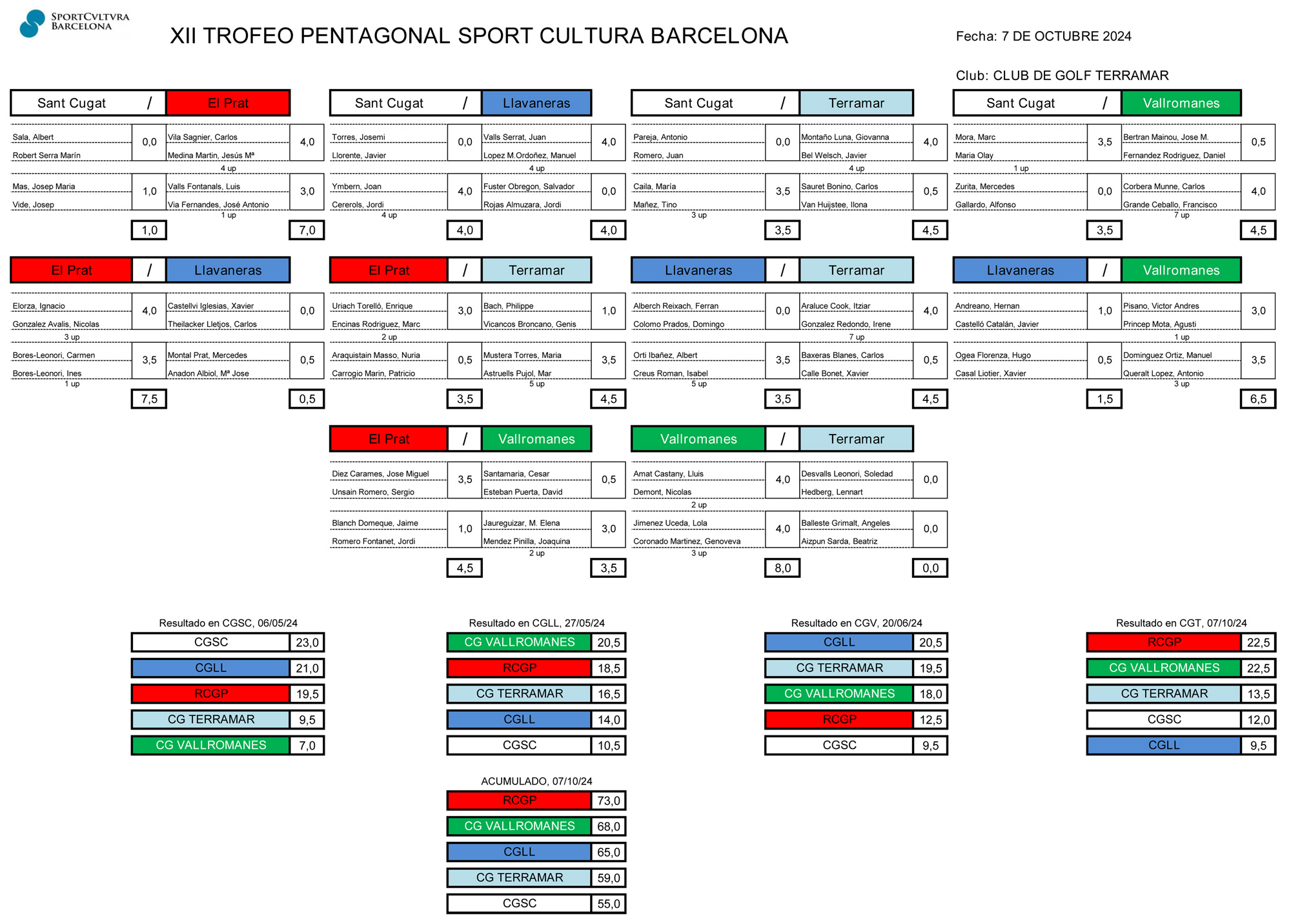 El 7 de octubre tuvo lugar en el Club de Golf Terramar el cuarto partido del torneo Pentagonal Sport Cultura Barcelona 2024.