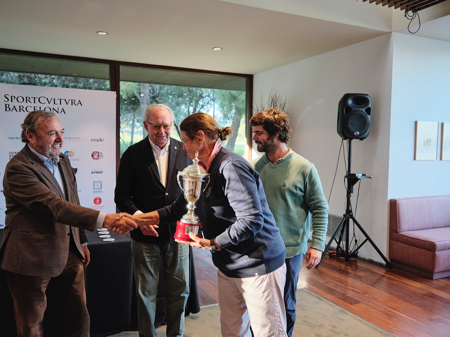 Los capitanes del equipo del Real Club de Golf El Prat, Nuria Araquistain y Marc Encinas, recibieron el trofeo de manos de Manolo Carreras, presidente de honor de Sport Cultura Barcelona y vicepresidente del Real Club de Golf El Prat, y Josep Mateu, presidente de Sport Cultura Barcelona.