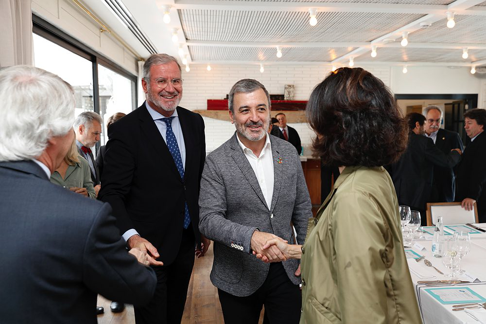Jaume Collboni, candidato del PSC a la Alcaldía de Barcelona, compartió con los socios de Sport Cultura Barcelona un almuerzo-coloquio, en el Reial Club Marítim de Barcelona.