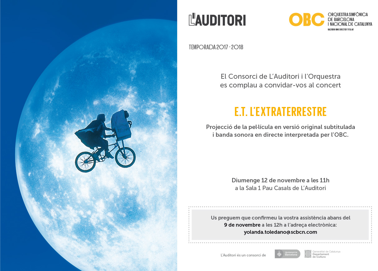 El Consorci de L’Auditori i l’Orquestra, invitó a los socios de Sport Cultura Barcelona a la proyección de la película E.T. EL EXTRATERRESTRE, en versión original subtitulada y banda sonora en directo interpretada por la OBC.