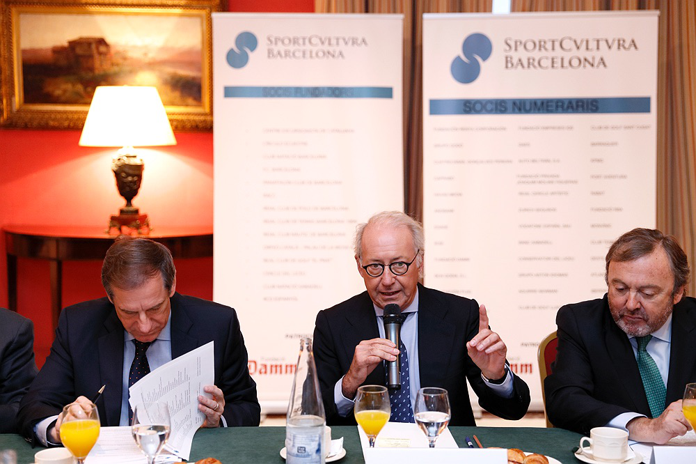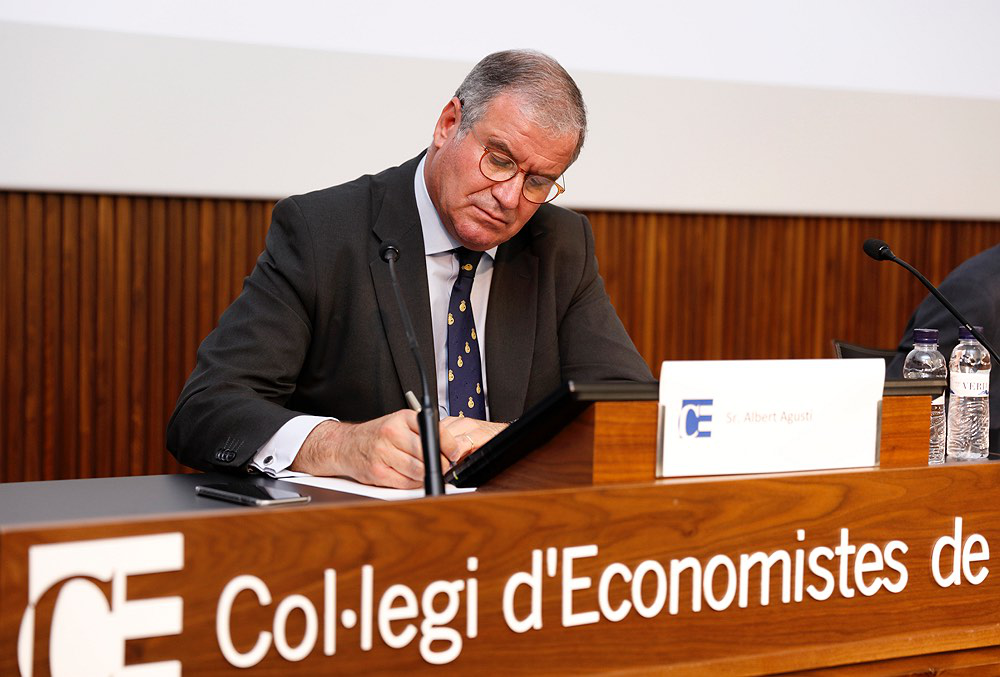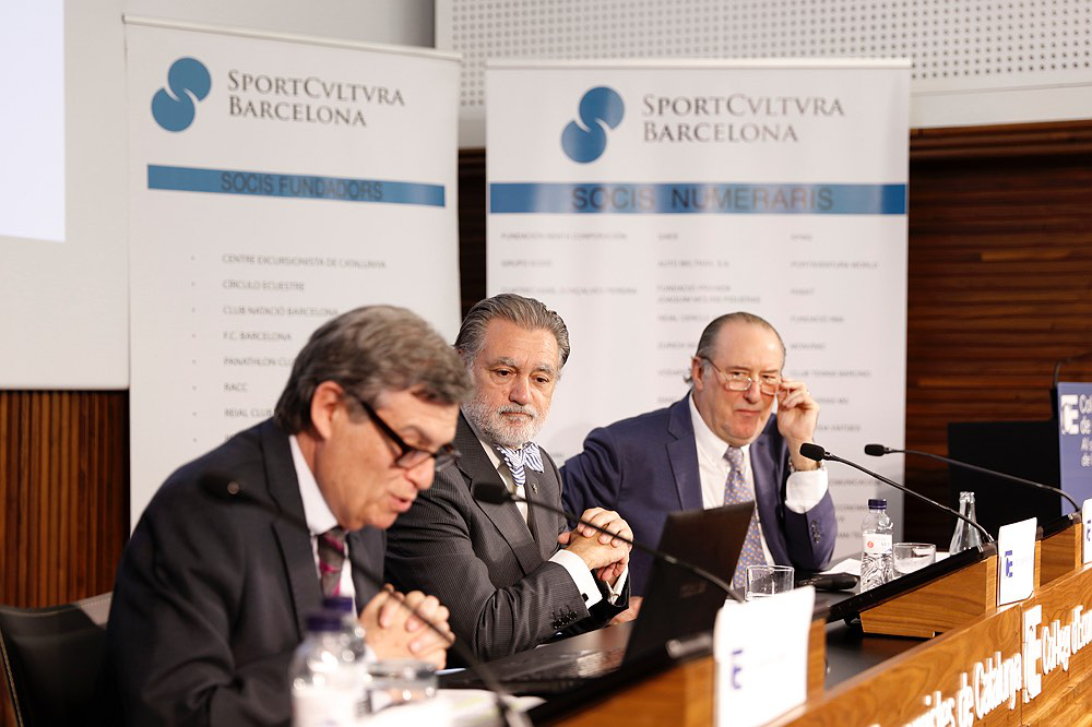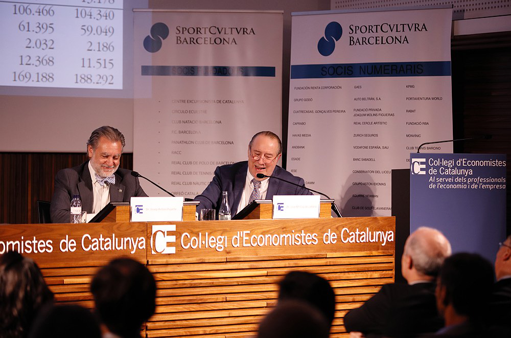 Joan B. Casas, decano del Col·legi d'Economistes de Catalunya, presentó la conferencia: Salud, Deporte y Economía. Albert Agustí, presidente de Sport Cultura Barcelona, actuó de moderador e introdujo a los dos ponentes: