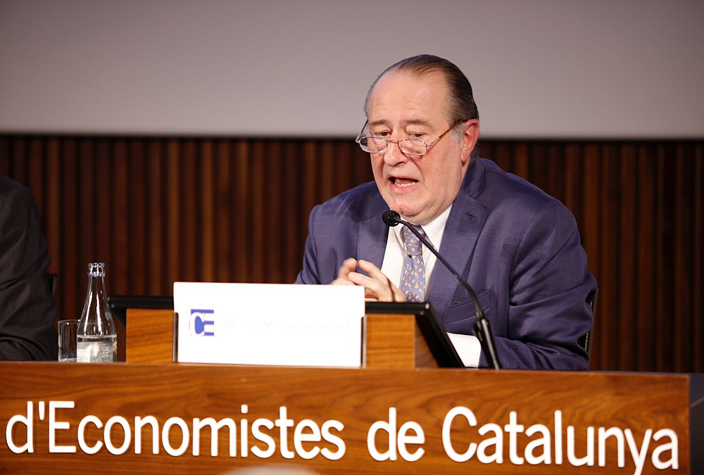 José Mª Gay de Liébana, presidente de la Comisión de Economía y Finanzas del Colegio de Economistas de Cataluña, habló del empleo vinculado al deporte, de las empresas cuya actividad económica principal está vinculada al deporte, del gasto de los hogares, consumo medio en servicios y equipos deportivos (desglosado por comunidades autónomas), también del gasto público (Administración General del Estado, Autonómica y Local), la enseñanza (formación profesional y universitaria), el comercio exterior, el turismo, hábitos, deportes federados, instalaciones y espacios deportivos. Acompañó dicha exposición con datos gráficos extraídos del “Anuario de Estadísticas Deportivas 2015”, elaborado por la “Subdirección General de Estadística y Estudios. Secretaría General Técnica. Ministerio de Educación, Cultura y Deporte”.