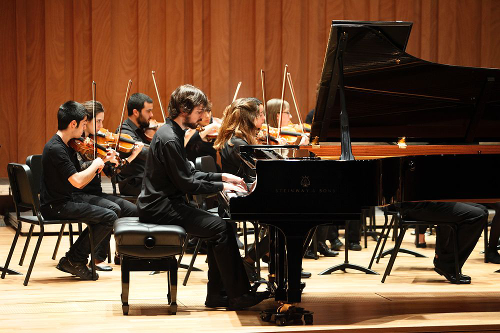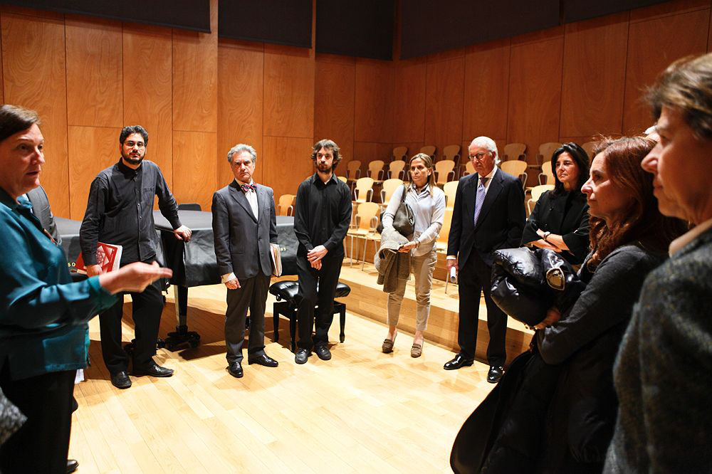 Maria, Serrat, Directora General dio la bienvenida a los asistentes y los acompañó al Foyer del Auditorio dónde tuvo lugar el concierto a cargo del Coro de Cámara, que interpretó: Motet de F. Mendelssohn y la orquesta que tocó: 1 movimiento del concierto para piano de M. Ravel.