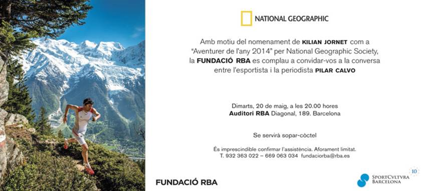 Con motivo del nombramiento de Kilian Jornet como "Aventurero del año 2014" por National Geographic Society, Sport Cultura Barcelona y RBA organizaron una conversación entre el deportista y la periodista Pilar Calvo.