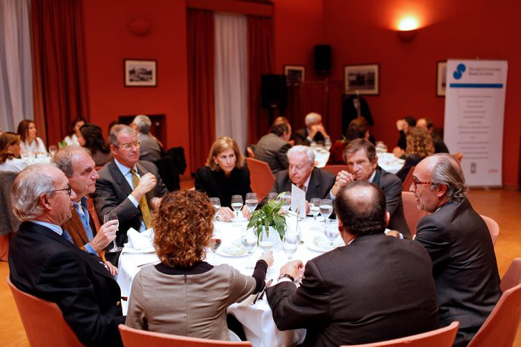 Abrió el coloquio el abogado Emilio Cuatrecasas con una declaración contundente “Los turistas vienen a Barcelona a visitar lo que pagaron nuestros abuelos industriales: la Sagrada Familia, la Catedral y las obras de Gaudí”, no obstante, elogió elocuentemente la ciudad y explicó con vehemencia como en los años 70, Barcelona era toda esplendor “la capital catalana era la más importante de la Península Ibérica en cultura, en número de editoriales, en teatros, en escuelas de negocios… y no hemos sabido hacer de esto un proyecto nacional”, expuso que la decadencia de Barcelona coincidió con una fecha emblemática, 1978 el comienzo de la Era Democrática. Pero a raíz de las Olimpiadas Barcelona sobrevino muy conocida a nivel internacional y el turismo se reactivó y actualmente está posicionada como la sexta ciudad Europea. Emilio concluyó su parlamento ofreciendo siete ideas para que Barcelona vuelva a brillar como antaño.