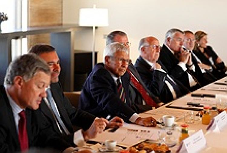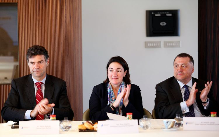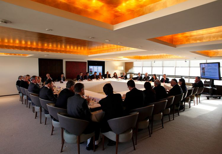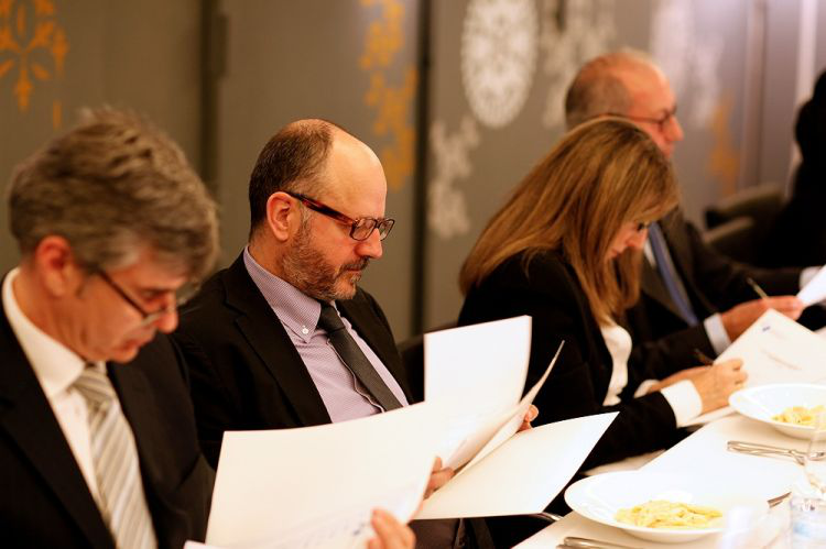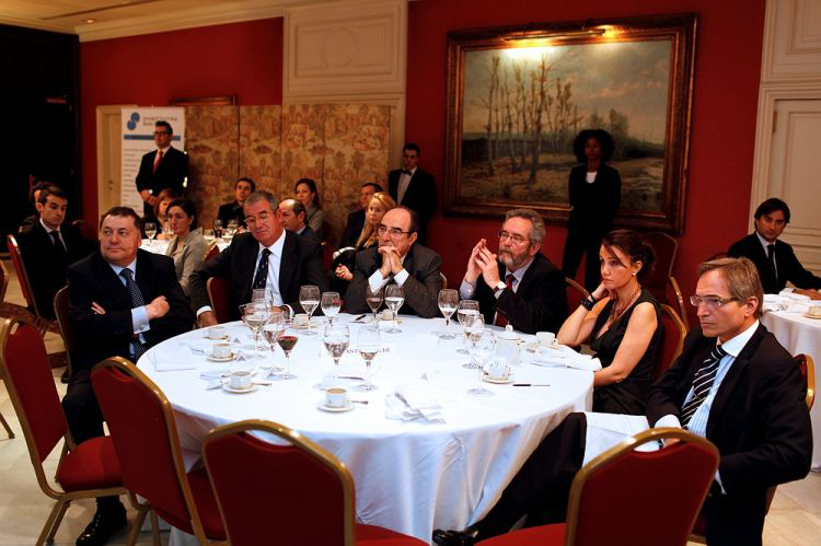 Manuel Carreras actuó de moderador y presentó a los tres ponentes del interesante almuerzo-coloquio, sobre “Barcelona, presente y futuro”: Emilio Cuatrecasas, Presidente de Cuatrecasas, Gonçalves Pereira, Pau Guardans, Presidente de In-Hoteles y Carlta Vitzthum, Directora de Comunicación y Relaciones Externas de Public Interest Oversight Board.