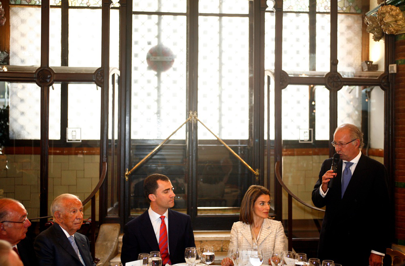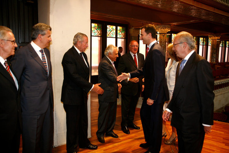 Con motivo de la Asamblea General de Socios,SSAARR los Príncipes de Asturias y de Girona, presidieron el Almuerzo que tuvo lugar a continuación de la Asamblea. Acompañados del Secretario de Estado para Universidades, Sr. D. Marius Rubiralta, SSAARR Los Príncipes, saludaron a los socios de Sport Cultura Barcelona, en el escenario del incomparable marco del Palau de la Música, donde posaron con todos ellos. Los Príncipes firmaron en el libro de honor se Sport Cultura Barcelona, y recibieron de manos del Presidente Manuel Carreras, una escultura de la artista Rosa Serra. A continuación y antes del almuerzo departieron con todos los invitados en un distendido aperitivo. Antes de comenzar el almuerzo y tras las palabras de bienvenida de Manuel Carreras, SAR el Príncipe de Asturias, tuvo unas palabras agradeciendo la labor que realiza Sport Cultura Barcelona, promoviendo el deporte y la cultura en todos sus ámbitos. El príncipe elogio el espíritu catalán y lo que se denomina ''hacer piña'' y recordó que ''sólo unidos por un objetivo común se alcanza el auténtico triunfo'', poniendo como ejemplo a la selección española de fútbol que la noche anterior había pasado a la final de la Eurocopa. Al finalizar el almuerzo o y antes de que Felix Millet les pudiera explicar la obra de ampliación del palau de la Música Catalana, los Príncipes tomaron café en la Sala de Camara donde pudieron continuar hablando con los asistentes.