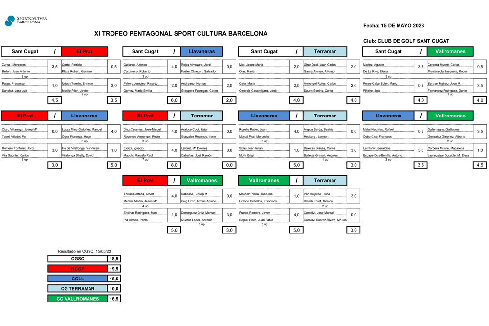 El 15 de mayo dio comienzo en el Club de Golf Sant Cugat una nueva edición del torneo Pentagonal Sport Cultura Barcelona de golf, que este 2023 celebra su XI edición.