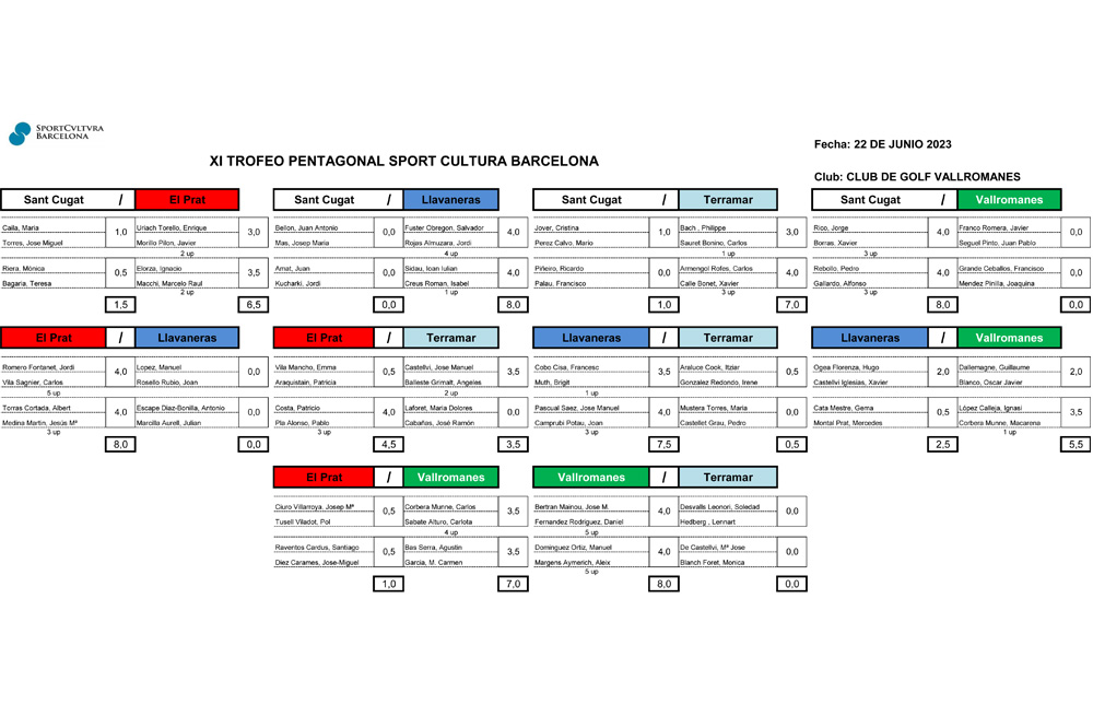 El 22 de junio tuvo lugar en el Club de Golf Vallromanes el segundo partido del torneo Pentagonal Sport Cultura Barcelona 2023.