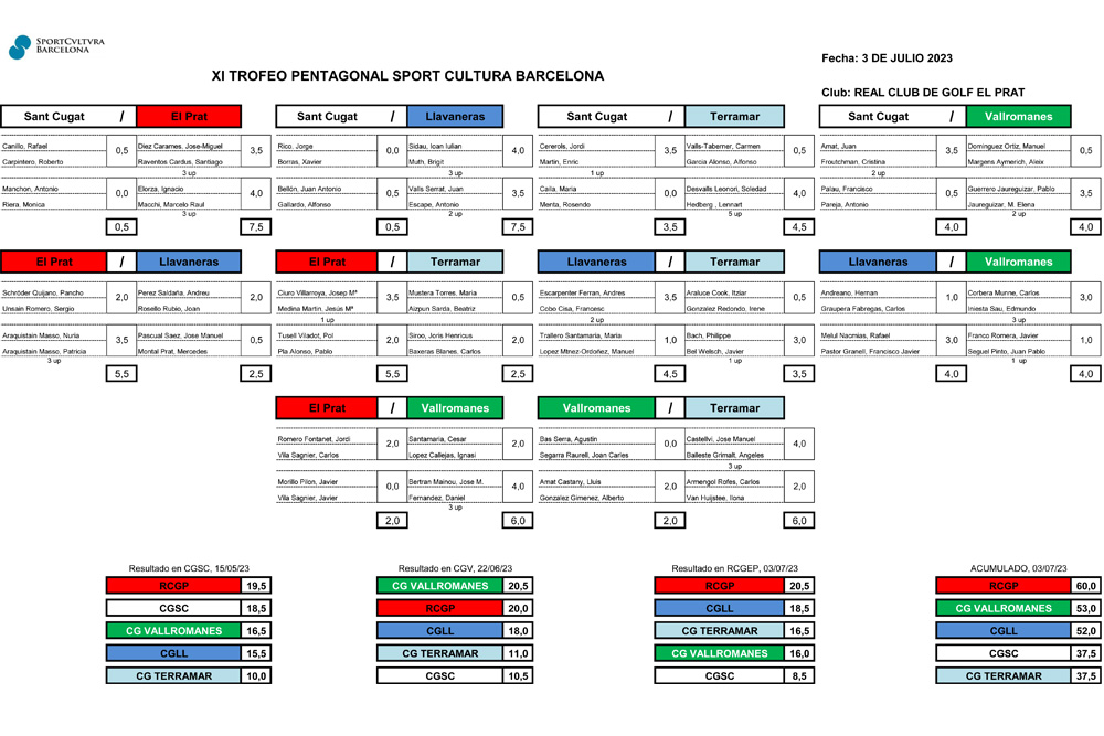 El 3 de julio tuvo lugar en el Real Club de Golf El Prat el tercer partido del torneo Pentagonal Sport Cultura Barcelona 2023.