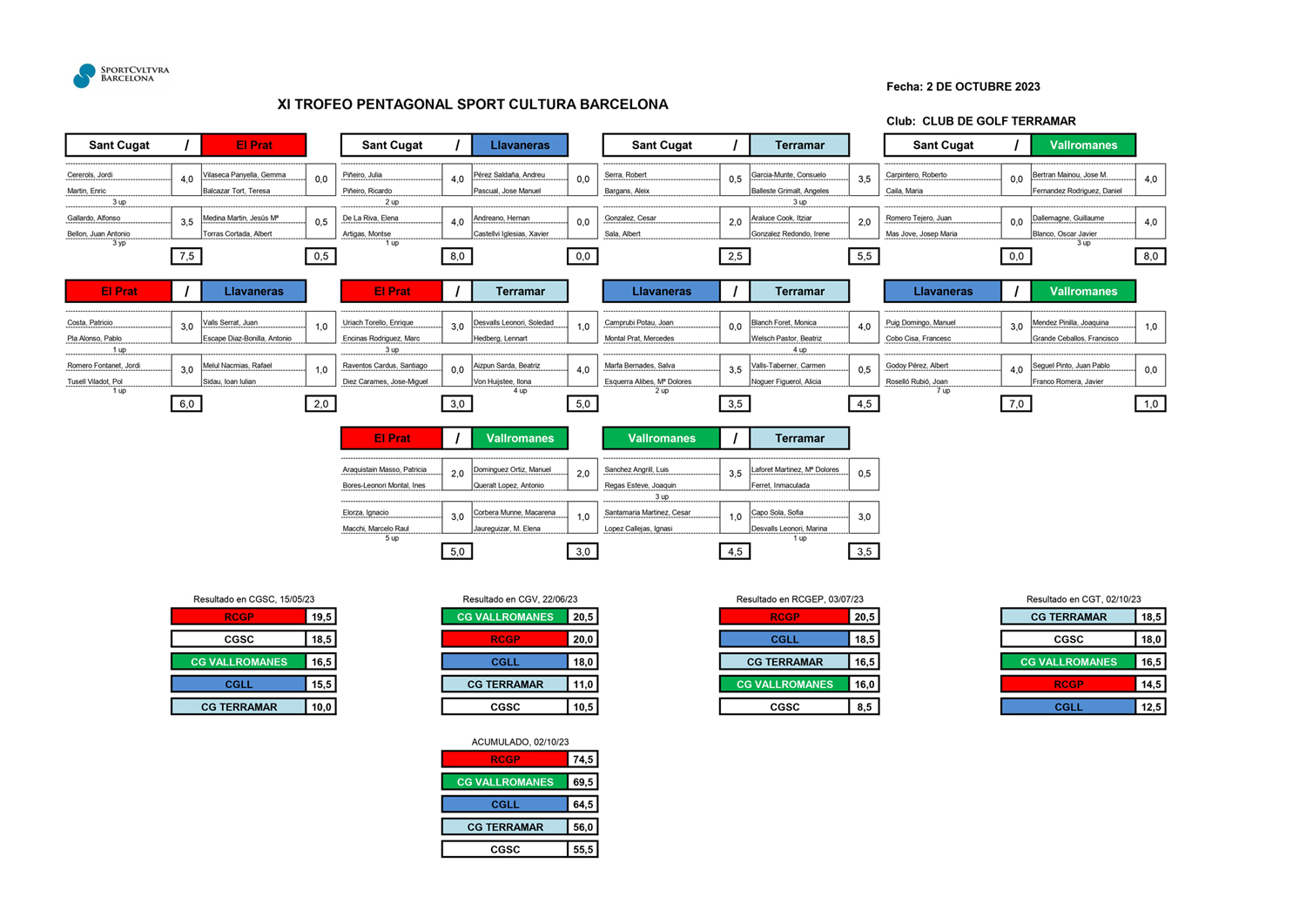 El 2 de octubre tuvo lugar en el Club de Golf Terramar el cuarto partido del torneo Pentagonal Sport Cultura Barcelona 2023.