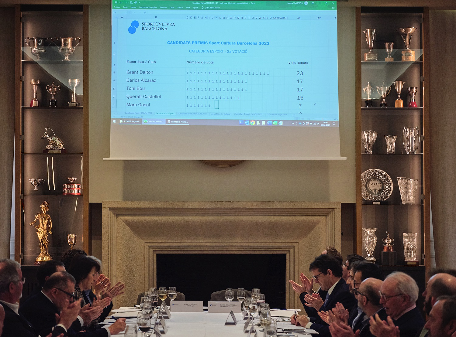 El jurado técnico, formado por profesionales de los medios de comunicación y algunos socios de la entidad, se reunió en el Real Club de Tenis Barcelona, en el transcurso de un almuerzo, para seleccionar a los finalistas de las tres categorías que Sport Cultura Barcelona premia: Deporte, Cultura y Trayectoria.