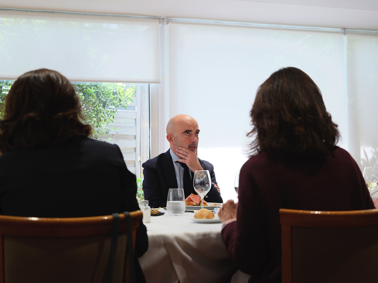 En esta ocasión, el encuentro tuvo lugar en el restaurante del Real Club de Polo y junto a Daniel Sirera asistieron también Ángeles Esteller (vicesecretaria sectorial), Gemma Gesa (jefa de gabinete) y Rocío Alcalá (asesora de comunicación).